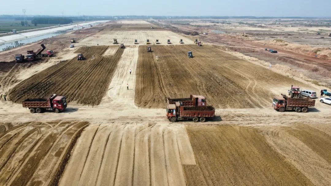 在官路水库项目建设现场,1400余名建设者及897台套设备奋战在一线。官路水库作为青岛现代水网节点之一、国家水网的重要节点以及省内在建最大调蓄水库,概算投资 91.45 亿元,设计总库容 2.11 亿立方米。目前项目征地移民、新建河道改造土方开挖等工作已全部完成;围坝填筑累计完成至总量的62%;穿坝构筑物累计完成至总量的88%;泵站工程混凝土浇筑完成至总量的33%;连接线工程混凝土浇筑完成至总量的24%。工程已累计完成投资50.6亿元,围坝已实现合龙,水库雏形初现,官路水库项目将持续加压推进工程建设,确保各项节点如期顺利完成。